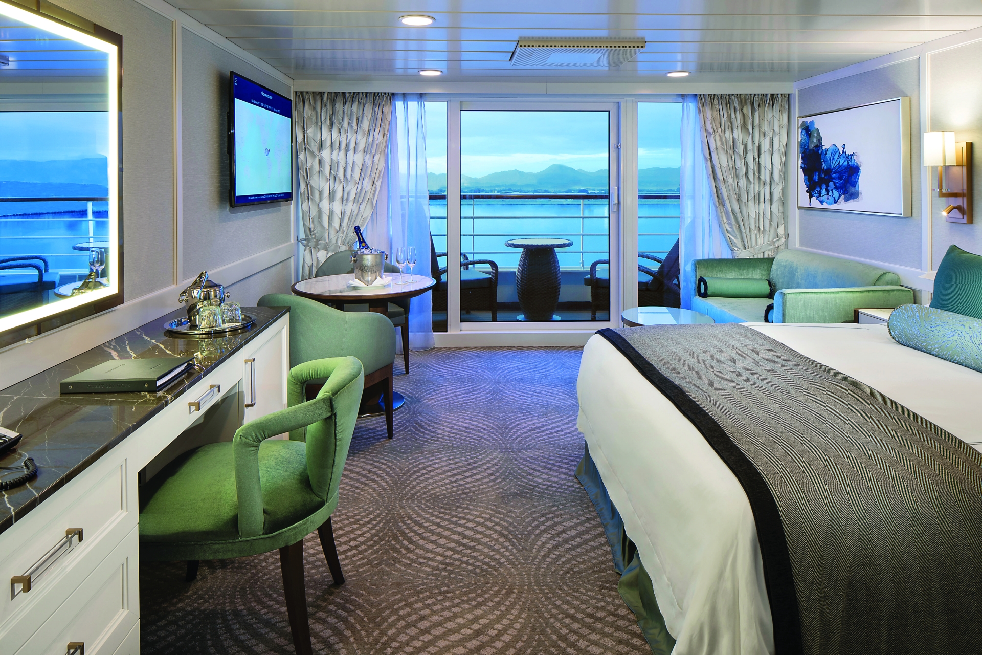Das elegante Boutique-Schiff (Baujahr 1998, umfassend renoviert 2018) bietet Platz für rund 684 Gäste und überzeugt mit persönlichem Service, stilvollem Interieur und hochwertiger Ausstattung. Mehrere Restaurants mit freier Platzwahl, 24-Stunden-Roomservice sowie komfortable Kabinen und Suiten – teils mit Veranda oder Butler-Service – sorgen für höchsten Genuss.