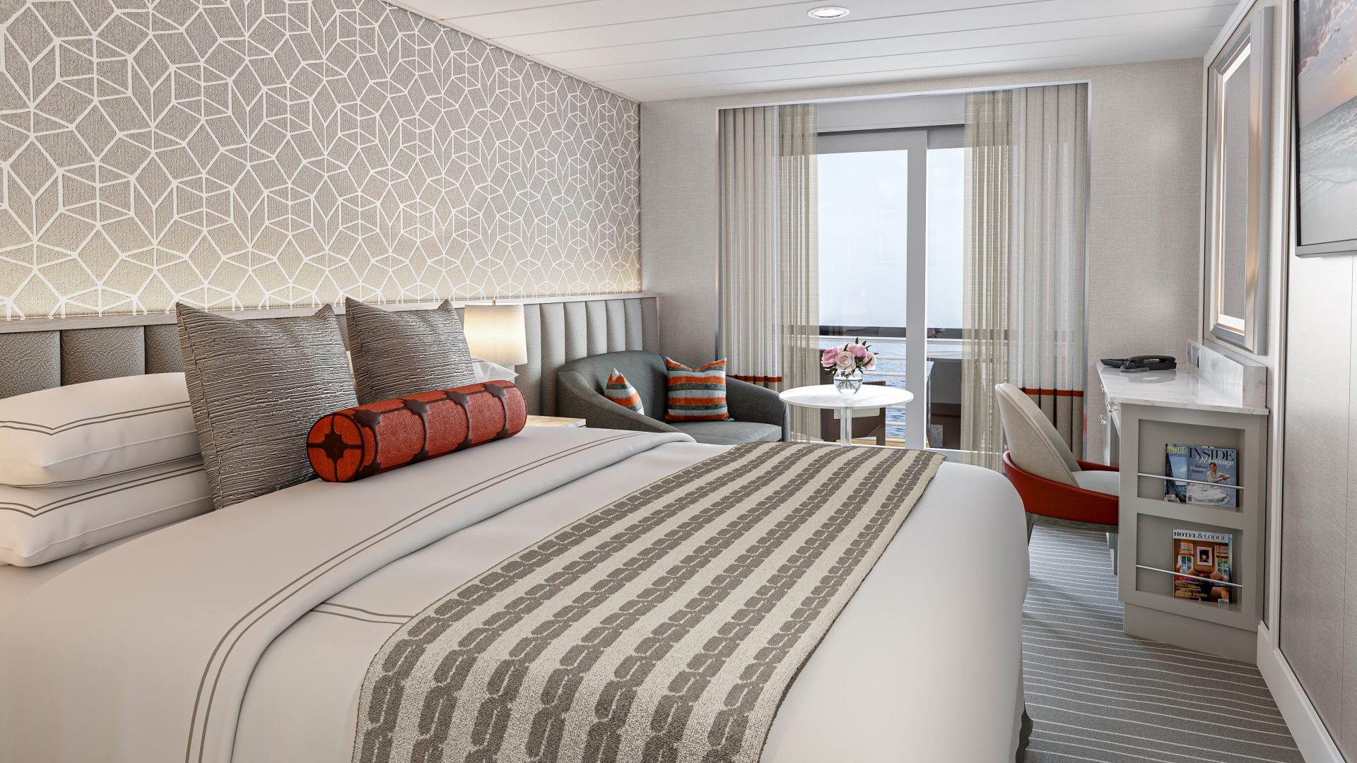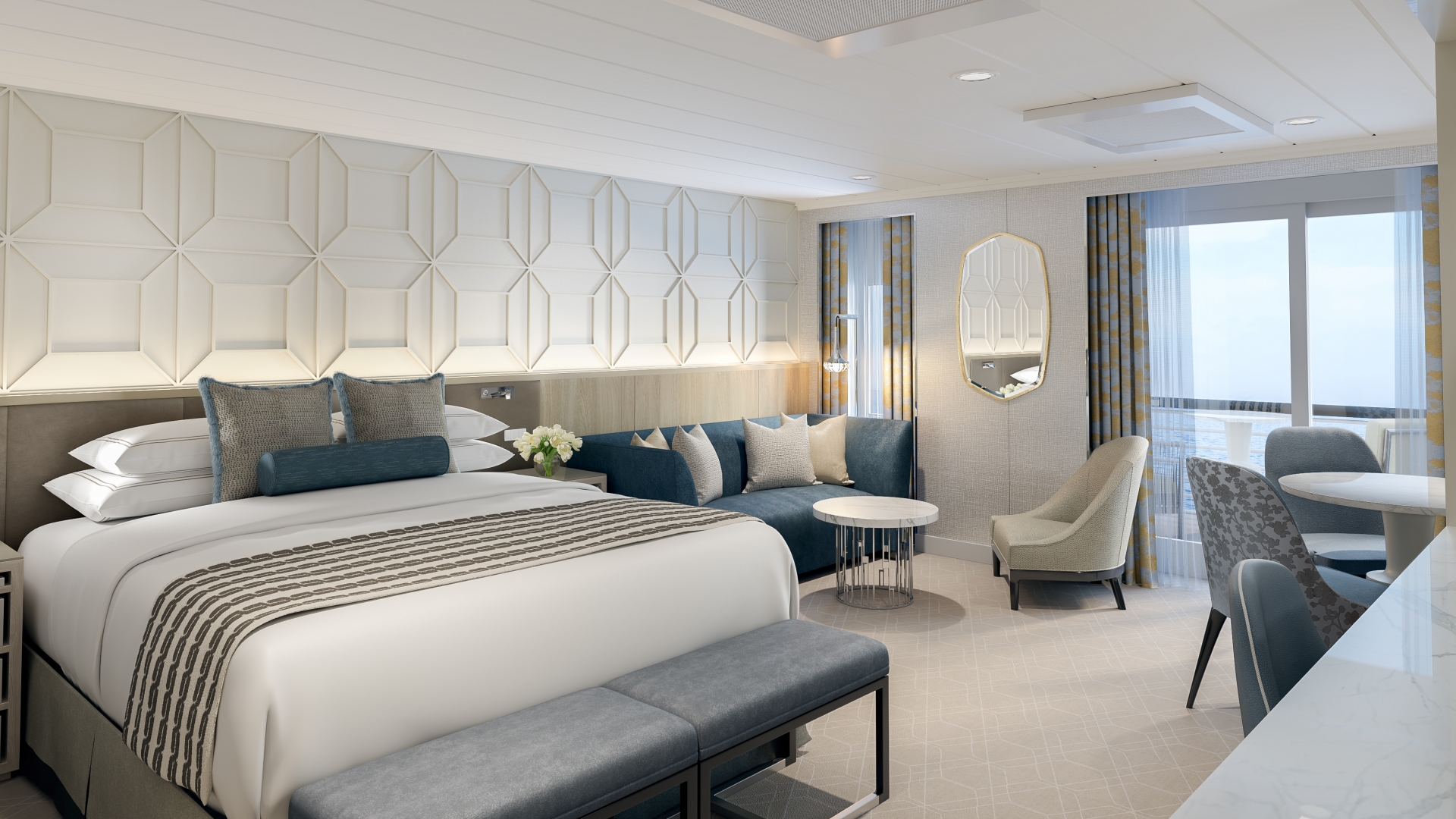 Alle Suiten, Kabinen und Penthouses verfügen über eine private Veranda und elegante Badezimmer mit Regenduschen. Hochwertige Möbel, edle Stoffe und ausgewählte Kunstwerke schaffen ein zeitloses Ambiente. An Bord erwartet Sie zudem die „Feinste Küche auf See“ – kombiniert mit faszinierenden Reisezielen weltweit.