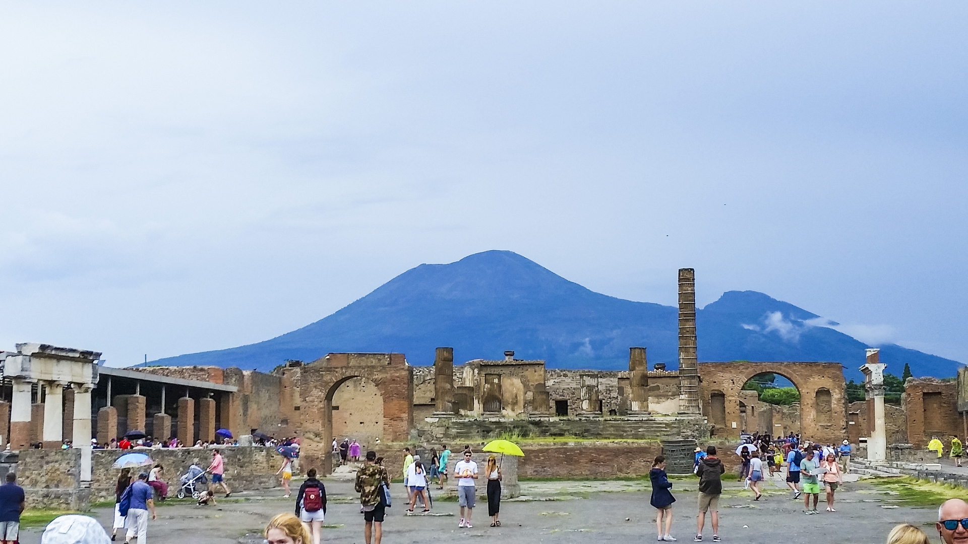 An der Südflanke des Vesuv liegt die Stadt Pompeji, die im Jahre 79 n. Chr. durch den Vulkan verschüttet wurde. Die Ruinenstadt versetzt uns mit ihren Tempeln, Toren