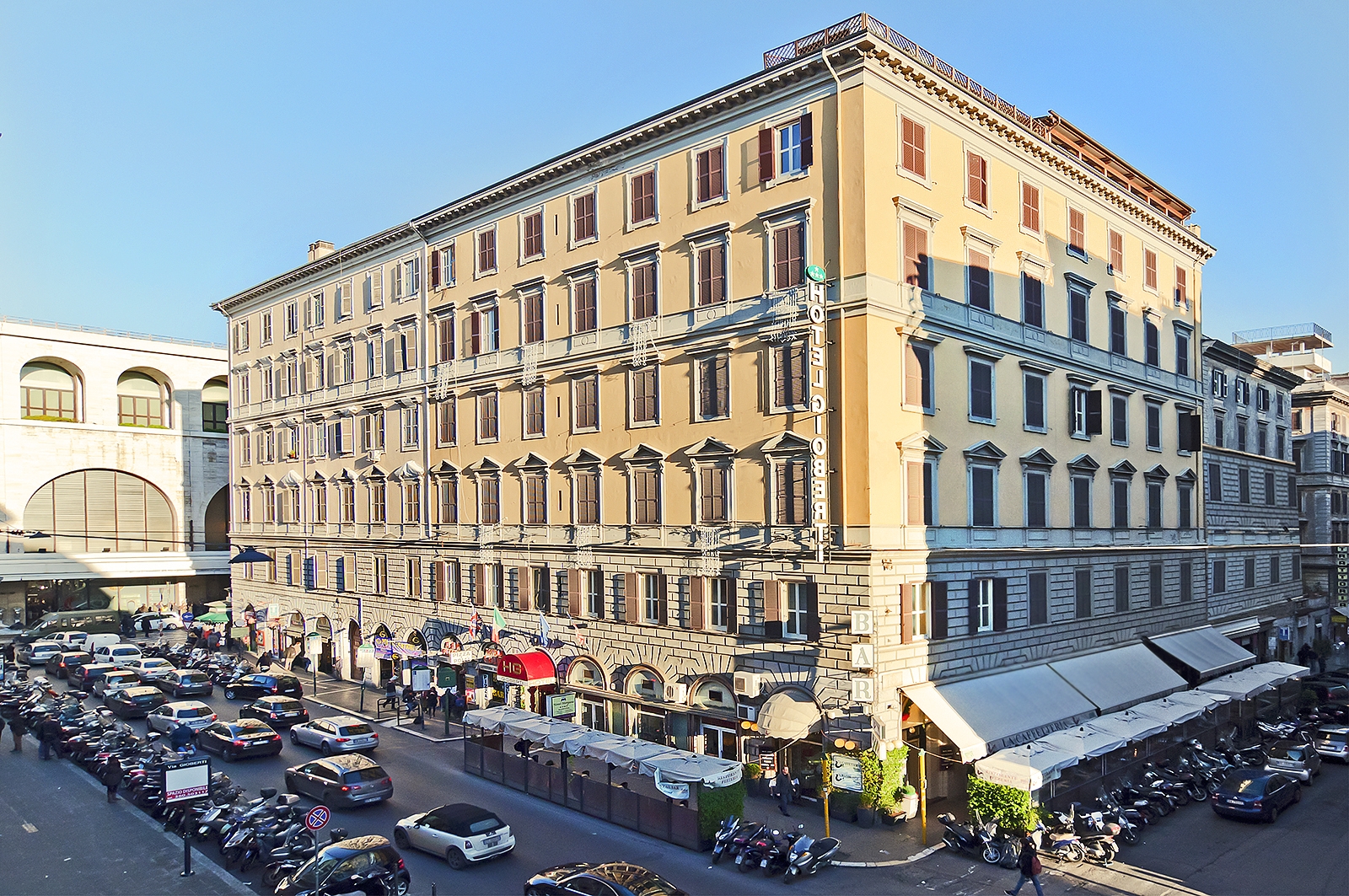 Nur wenige Schritte vom Hauptbahnhof Termini entfernt, dem wichtigsten Verkehrsknotenpunkt Roms, erwartet Sie das Hotel Gioberti in einem eindrucksvollen historischen Palazzo aus dem 19. Jahrhundert. In unmittelbarer Nachbarschaft befinden sich die prachtvolle Basilica di Santa Maria Maggiore, das lebendige Viertel Monti sowie die schnurgeraden Achsen, die direkt in Richtung Kolosseum, Forum Romanum und Piazza Venezia führen. Dank der hervorragenden Lage ist das Hotel ein idealer Ausgangspunkt, um Rom schnell, flexibel und bequem zu entdecken. Das gepflegte Mittelklassehotel verbindet traditionelles italienisches Flair mit modernem Komfort. In direkter Umgebung befinden sich viele Restaurants, Bars, kleine Läden und Cafés und machen das Viertel auch abends zu einem lebendigen Erlebnis.