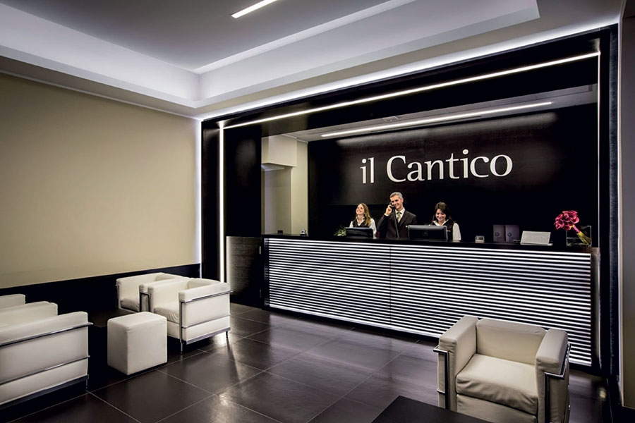 In der Nähe des Petersplatzes gelegen, gehört das Il Cantico zu den Geheimtipps in Rom. Von einigen Zimmern und der schönen Dachterrasse hat man einen einzigartigen Blick auf die Kuppel des Petersdoms. Das Hotel ist modern, stilvoll und freundlich gestaltet. In der oberen Etage befindet sich eine kleine Kapelle und Wasserspender sind auf den Fluren verteilt. Das schöne Frühstücksrestaurant mit großer Terrasse (wetterbedingt) lädt zu einem guten Start in den Tag ein. In der einladenden Bar mit kleinem Garten werden neben guten Getränken auch Snacks serviert.